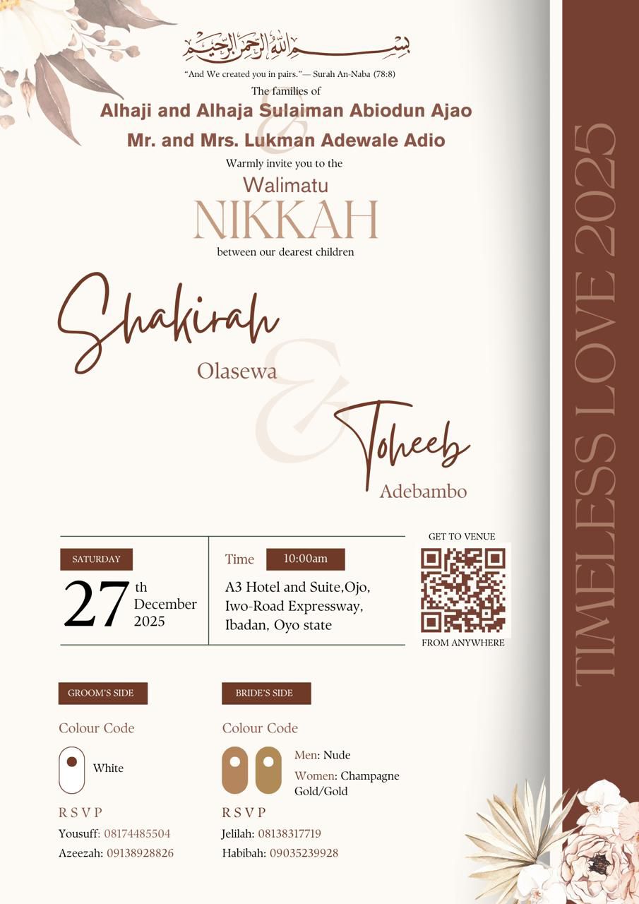 Alhamdulillāh, with hearts overflowing with love and gratitude to Allah ﷻ, we invite you to share in our joy as we begin this beautiful journey together as husband and wife.